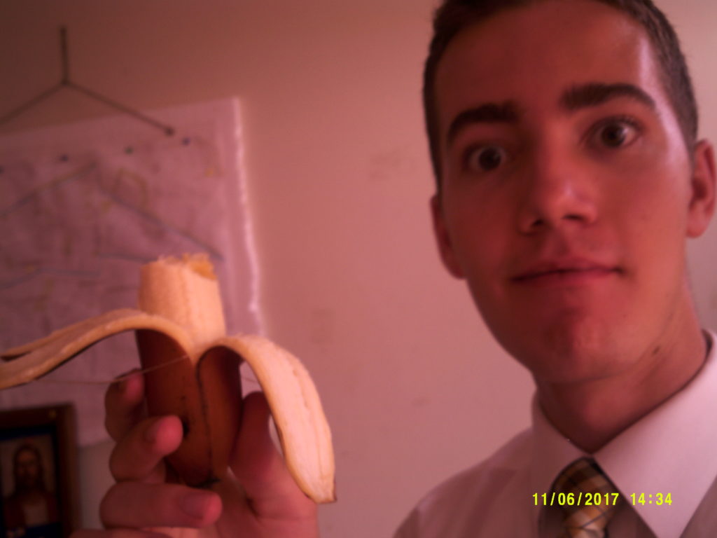 Today we were running a little late and we bought RED bananas at Rio Centro! We see the missionaries in our district there every time. The red bananas are really good. They taste more fruity but keep in mind they still taste like bananas because… they are bananas. ;D I can´t wait for the different fruits that will be available. Apparently in February or something all the members will just give us a bunch of mangoes because they will be in season and dirt cheap. A banana is around 4 cents.