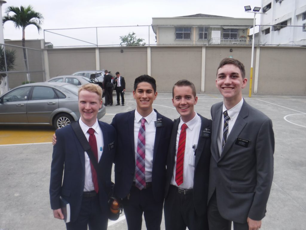 What else happened… we were able to find so many good people this week. One powerful experience happened because in the MTC we all listen to a talk about an apostle that served a mission and in his mission he saw a family in a park walking and he never went to go talk with them. He then had a regret his whole life because he ignored the prompting. – After church we were in our suits and it was really hot outside and we had been talking with people that we knew on the way back to the apartment to drop off our suits. So of course the only thing I had in mind was “Hace calor” Then I see a family walking towards us strolling down the hill, the first thought that came into mind was, they probably don’t live here because it looks like they are coming from outside our sector. Then I had a such weight put on me remembering the talk. Without further hesitation I walked didn’t turn left I went up and shook the Dad’s hand and asked them how they were doing, I kind of thought they would stop to talk with us but nope, they kept on walking, so we walked with them! We had a fun conversation and the dad, Raul, knows quite a bit English and he tells us that he is the next door neighbor to a part member family that we were teaching not even a week ago! Raul didn’t know that the dad in the other family was a member! We are going to be teaching them in the future weeks! For future reference they are the Manyoma family (pronounced Mahn-jo-mah)