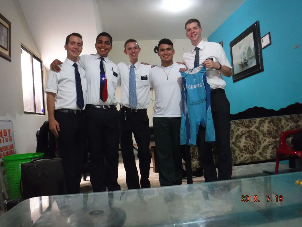 Elder Wilhelm, Elder Zepeda, Elder Vanderwel, Jesus Jara, and Elder Curtis with his gift.